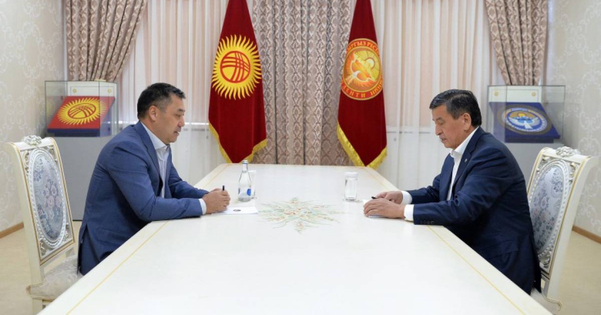 Сондай-ақ Жээнбеков бүгін Садыр Жапаровпен кездесіп, екеуі елдегі жағдай жайында сөйлескен.