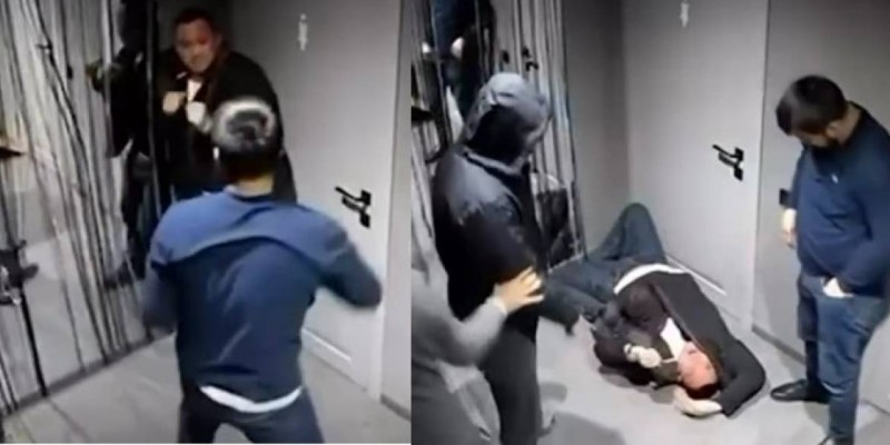 Таралған кадрлардан төбелестің алдымен мекеме ішінде басталғанын көруге болады. Екі ер адам бір адамға жабылып, соққының астына алған. Олардың бірі ерекше қатыгездік танытып, жәбірленушінің бас тұсынан ауыр соққылар бағыттаған. Сол сәтте қастарына үшінші адам келіп, жанжалды тоқтатпақ болғанымен, ол да бетінен соққы алып, шеттетілген.
