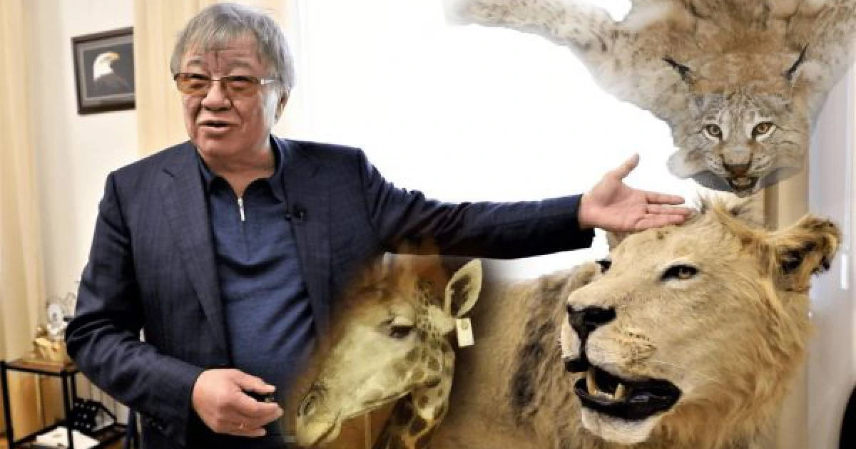 «Оңтүстік Африканың мына еркек арыстанын үш жыл бұрын атқам. Министрлігінен арнайы рұқсатын алған соң, жергілікті екі жігіт жол көрсетті. 7 жасар арыстанды екі оқпен құлаттым. Бірінші оғым шабына, екінші оқ арыстанның маңдайына тиді. Терісін шынайы, тірі арыстан секілді сақтау үшін арнайы фабрикада бальзамдаттым. Аңшылыққа академияның ақшасына бардым, бұл аңдар менің меншігім емес. Осы оқу орнының мүлкі. Мына арыстанды атып әкелуге отыз мың доллардай кетті, негізі 70-80 мың доллар тұрады, өзара қарым-қатынасқа байлансты құнын арзандатты. Атуға, әкелуге қанша ақша кеткені туралы құжаттардың бәрі бухгалтерияда бар», – дейді академик.
