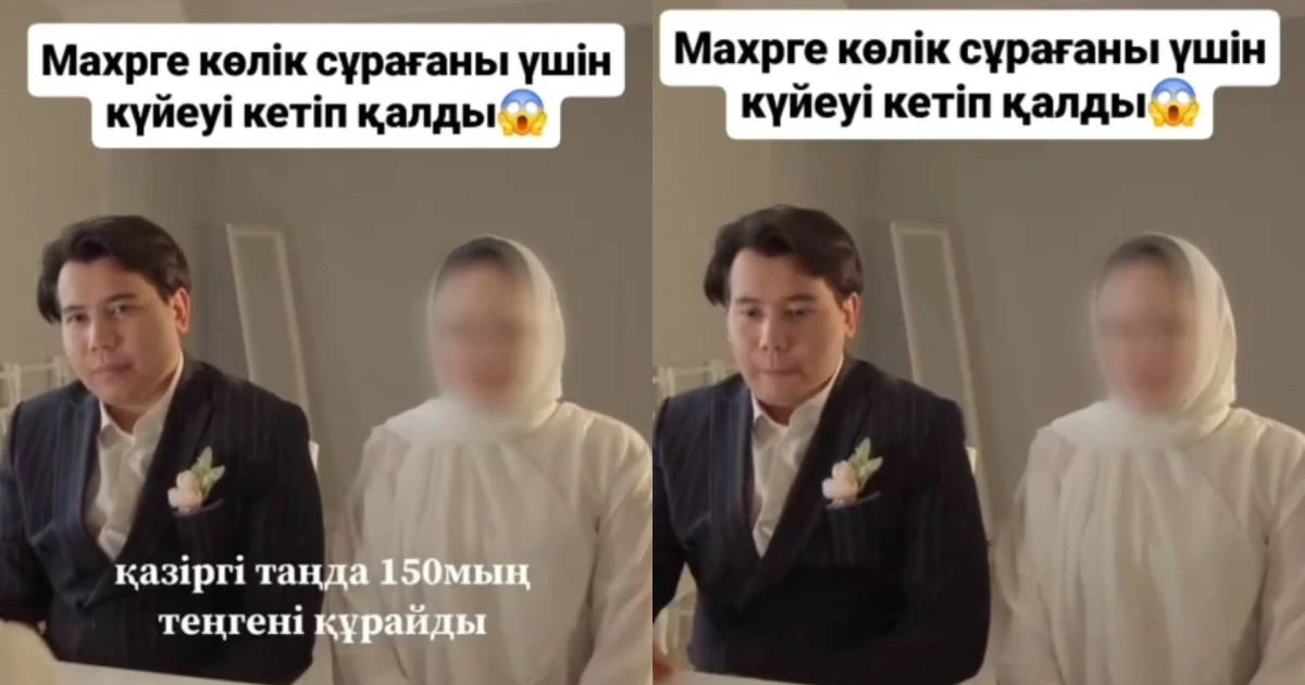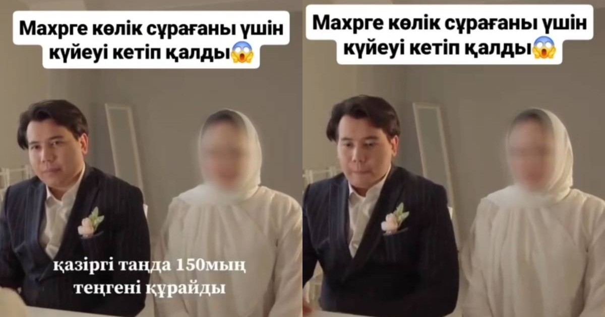 Әлеуметтік желіде неке қию рәсімі кезінде күтпеген жағдай орын алған сәттің видеосы тарады. Кадрларда күйеу жігіттің тойды тоқтатып, үн-түнсіз шығып кеткені көрінеді. Бұған қалыңдықтың мәһрге қымбат көлік талап етуі себеп болған, деп хабарлайды Arasha.kz.