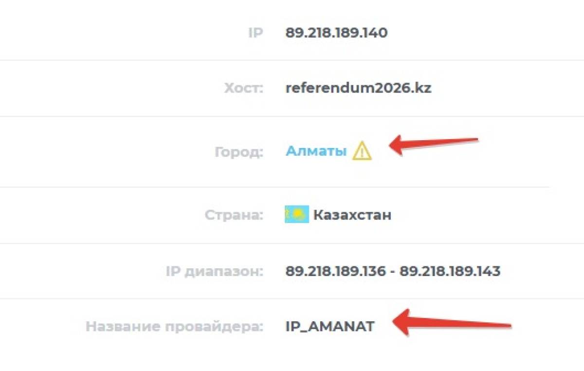 Сайттағы байланыс мәліметтерінде Астанадағы «Amanat» партиясы орналасқан ғимарат көрсетілген. Алайда тіркеу деректері оның Алматыдағы жеке тұлғаға байланысы барын аңғартады. Яғни, көрсетілген мекенжай мен нақты тіркелу орны арасында сәйкессіздік бар (VPN қолданылмаған жағдайда).