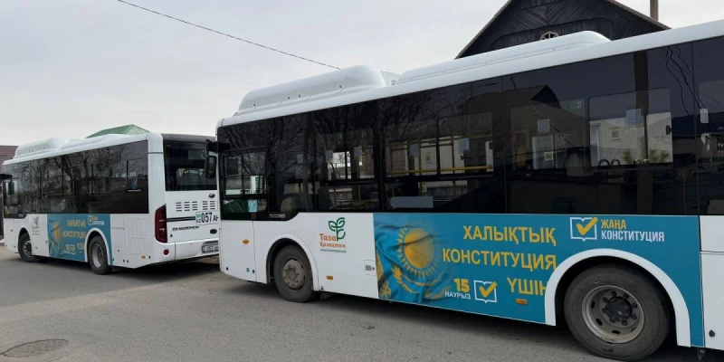 Еліміздің барлық өңірінде республикалық референдум қарсаңында ауқымды ақпараттық науқан жалғасуда. Қазіргі сәте қалалар мен облыс орталықтарында қатынайтын автобустар және басқа да қоғамдық көліктернегізгі арналардың біріне айналды.