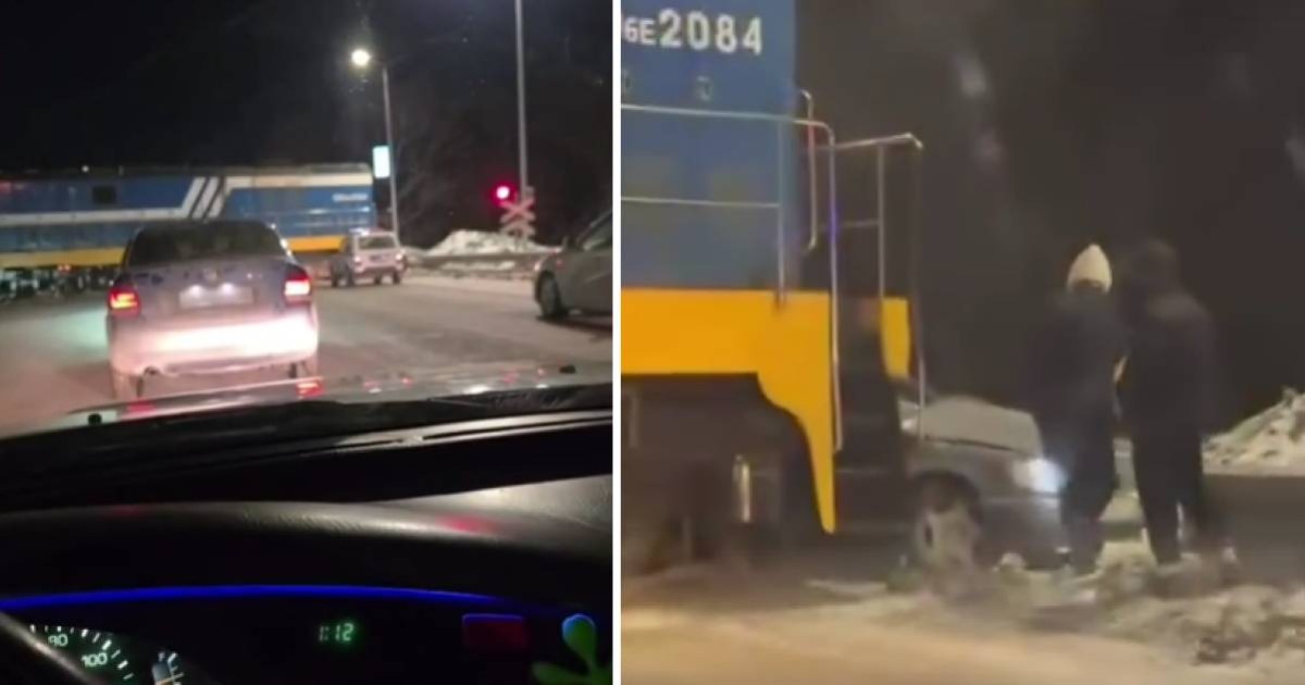 Семейде локомотив жеңіл көлікті теміржол бойымен сүйреп кетті