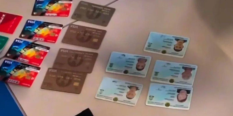 Сонымен қатар кадрларда бірнеше банктік карта көрінеді. Олардың арасында төрт Kaspi Gold картасы мен алдын ала мәлімет бойынша зейнетақы төлемдері түсіп отырған тағы төрт карта бар. Ақпаратқа сәйкес, ата-аналары еңбек өтілі бойынша зейнетақы алған, ал балалары мүгедектік бойынша төлем алып отырған.