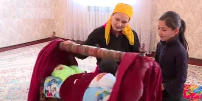 Көп балалы ана мемлекеттен жәрдемақы алады. Келіншек оған шүкіршілік ететінін айтады.